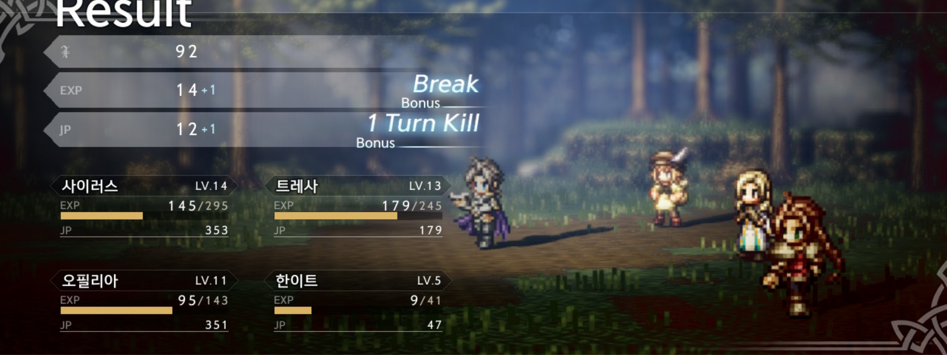 이전 글 참고https://wkqtkdtlr.tistory.com/411 [OCTOPATH TRAVELER 1] 옥토패스 트래블러 1 - 속삭임의 숲으로 가는 길, 1 Turn Kill을 하면서 한이트를 성이전 글 참고https://wkqtkdtlr.tistory.com/407 [OCTOPATH TRAVELER 1]
