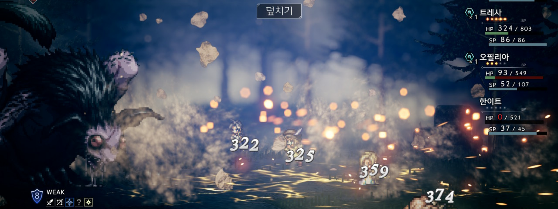 이전 글https://wkqtkdtlr.tistory.com/417 [OCTOPATH TRAVELER 1] 옥토패스 트래블러 1 - 한이트 1장 4편, 기사르마를 처치하자, 전투시스템(페이즈이전 글 참고https://wkqtkdtlr.tistory.com/412 [OCTOPATH TRAVELER 1] 옥토패