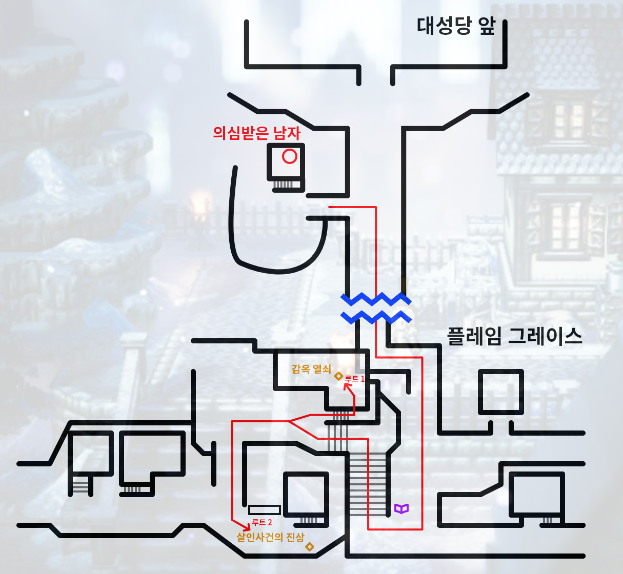 희한하게 이 서브퀘스트는 클리어 방법이 두 가지이다. 살인사건의 진상을 알아내거나 그냥 이 남자를 믿고 감옥에서 꺼내주면 된다. 두 가지 모두 플레임그레이스에서 얻을 수 있다.