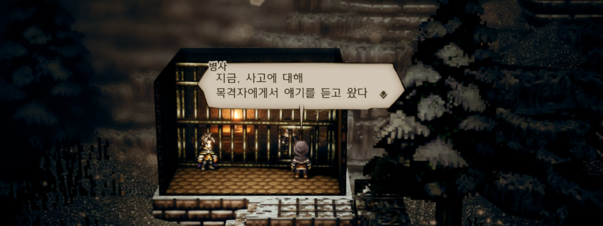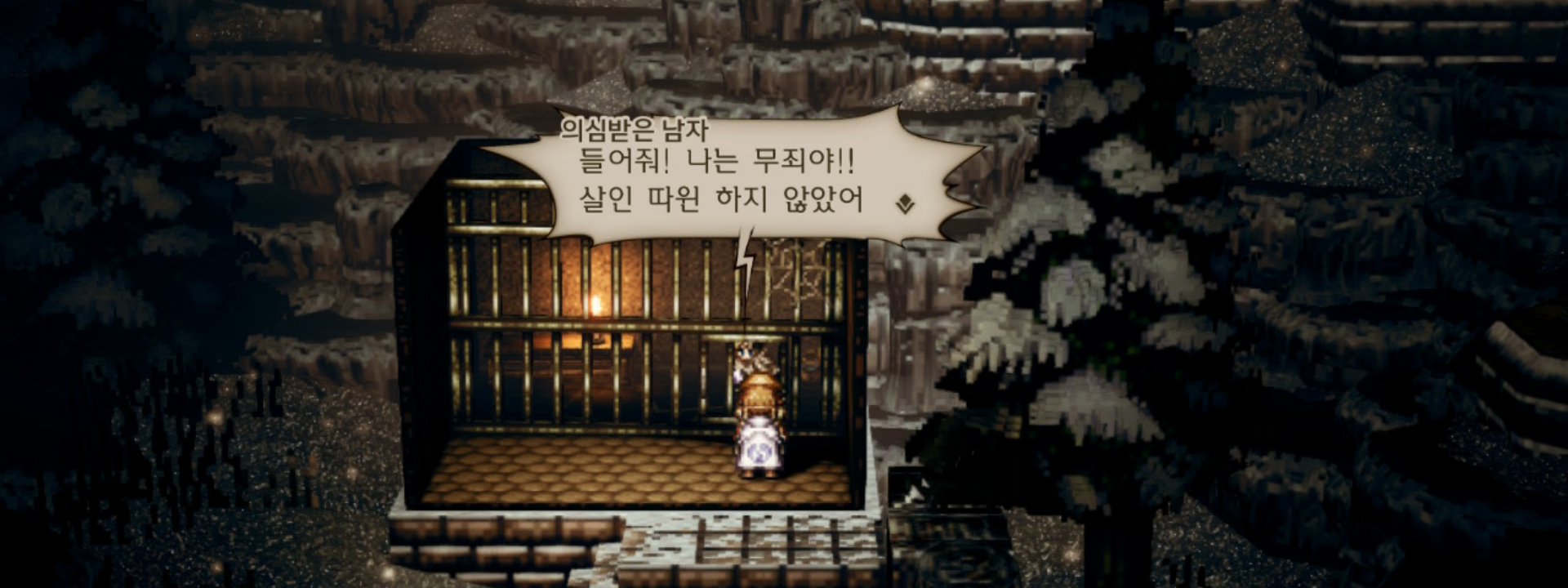 플레임그레이스 대성당 앞 감옥에는 억울하게 갇혔다고 주장하는 남자 한명이 있다. 말을 걸어보자