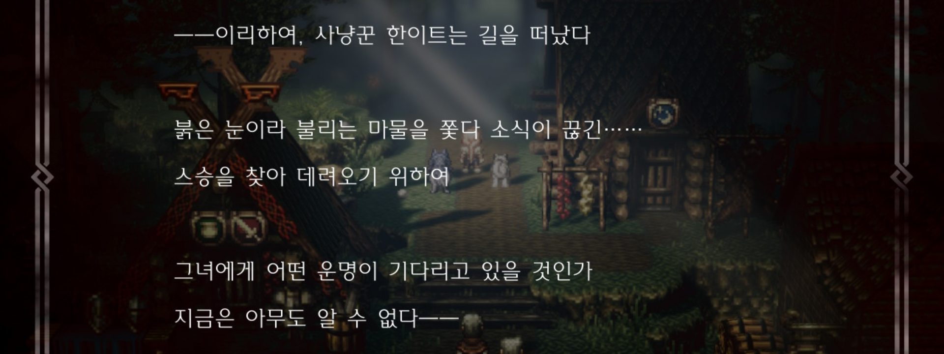 이전 글 참고https://wkqtkdtlr.tistory.com/412 [OCTOPATH TRAVELER 1] 옥토패스 트래블러 1 - 속삭임의 숲, 한이트가 마물을 대하는 마음가짐이전 글 참고https://wkqtkdtlr.tistory.com/411 [OCTOPATH TRAVELER 1] 옥토패스