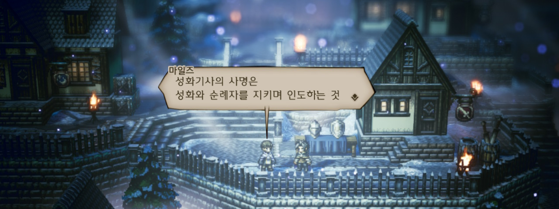 플레임그레이스에는 여관쪽에 성화기사 마일즈가 우리를 기다리고 있다. 그를 만나보자.