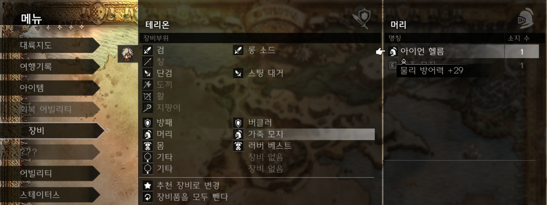 물리 방어력을 올려준다. 공짜로 얻은 방어구이니 이것도 테리온이 착용해주고 볼더폴로 가자