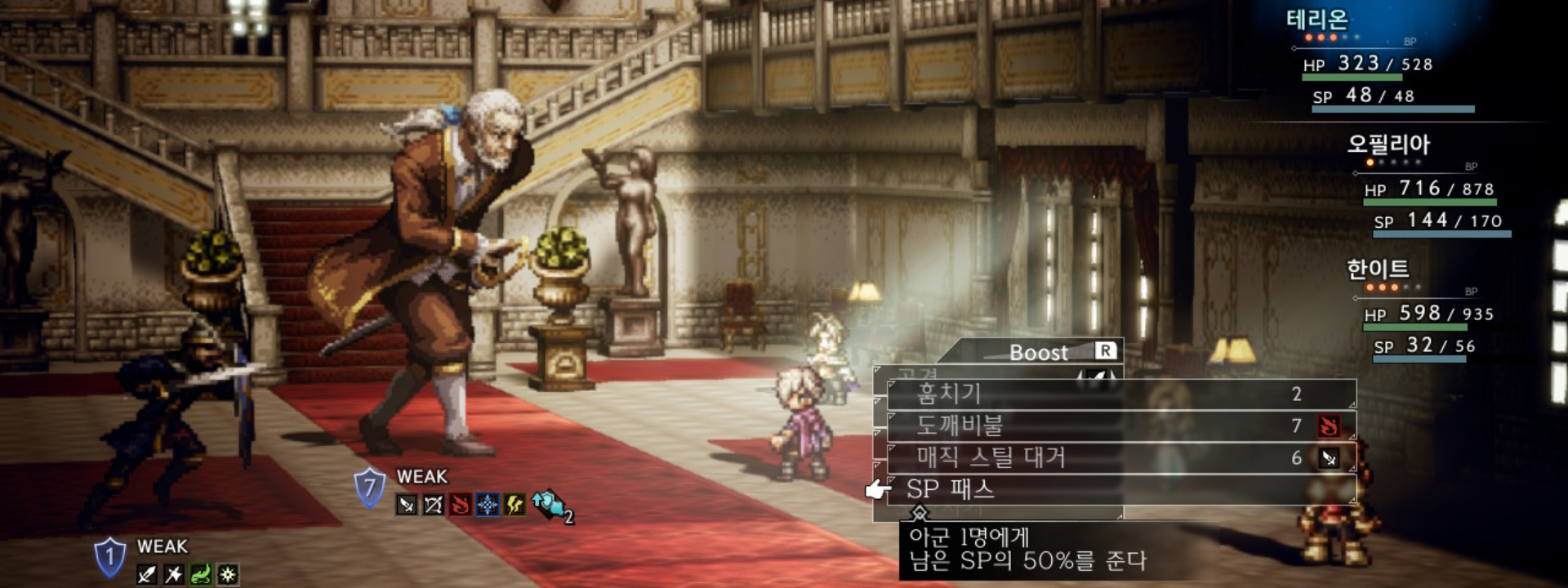 이전 글https://wkqtkdtlr.tistory.com/440 [OCTOPATH TRAVELER 1] 옥토패스 트래블러 1 - 사이러스 1장 5편, 레이버스가 저택에 들어갈 수 있게 되이전 글 참고https://wkqtkdtlr.tistory.com/435 [OCTOPATH TRAVELER 1] 옥토패