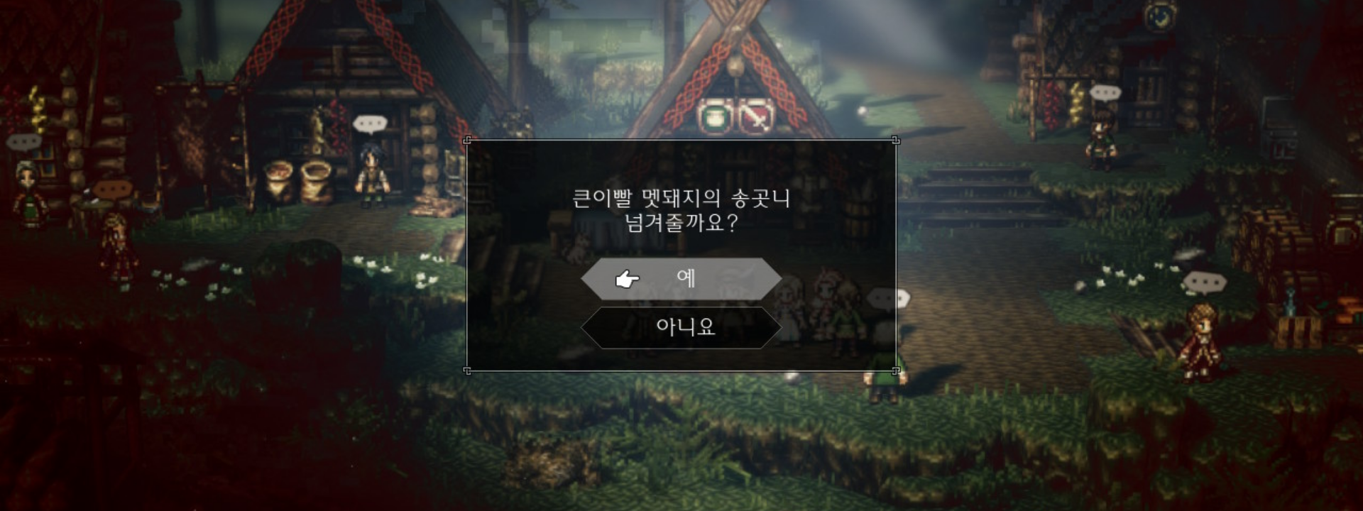 | 저 혹시 괜찮다면 그 큰이빨 멧돼지 송곳니를 제게 넘겨주시겠어요? |