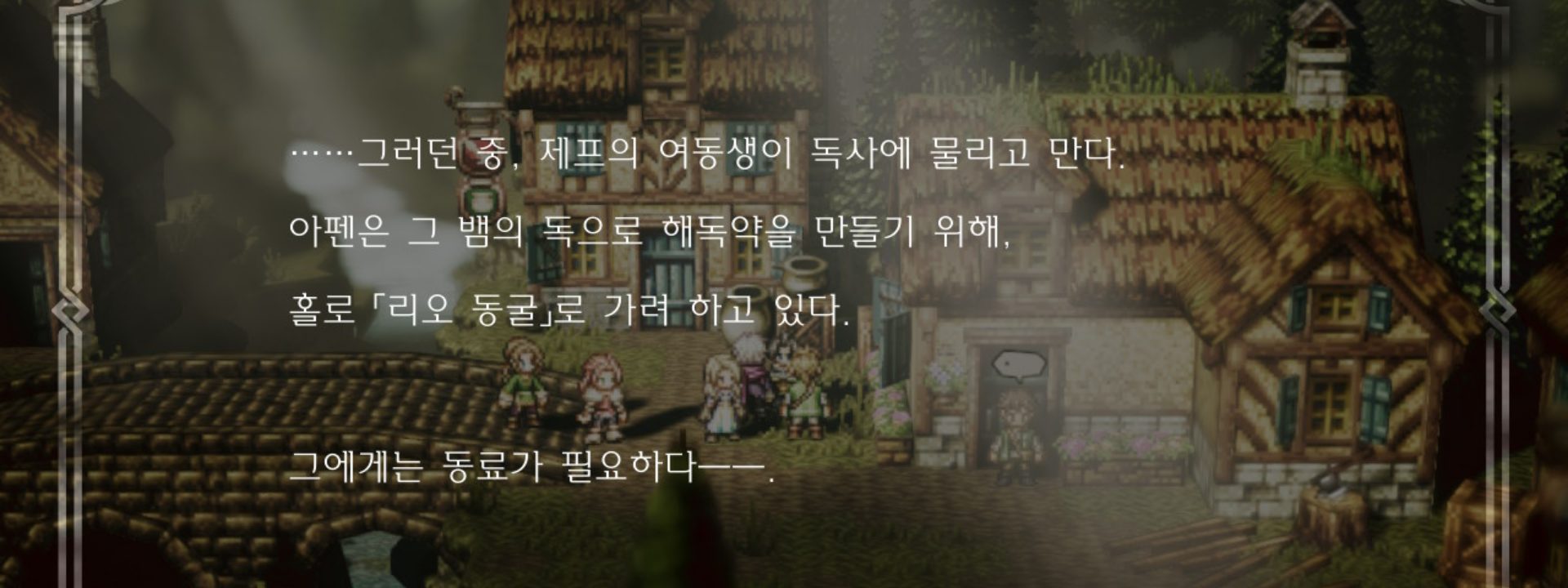 이전 글2025.02.26 - [게임 이야기/OCTOPATH TRAVELER] - [OCTOPATH TRAVELER 1] 옥토패스 트래블러 1 - 아펜 1장 1편, 약사 아펜의 이야기, 위급한 상황에 처해진 제프의 여동생 니나 [OCTOPATH TRAVELER 1] 옥토패스 트