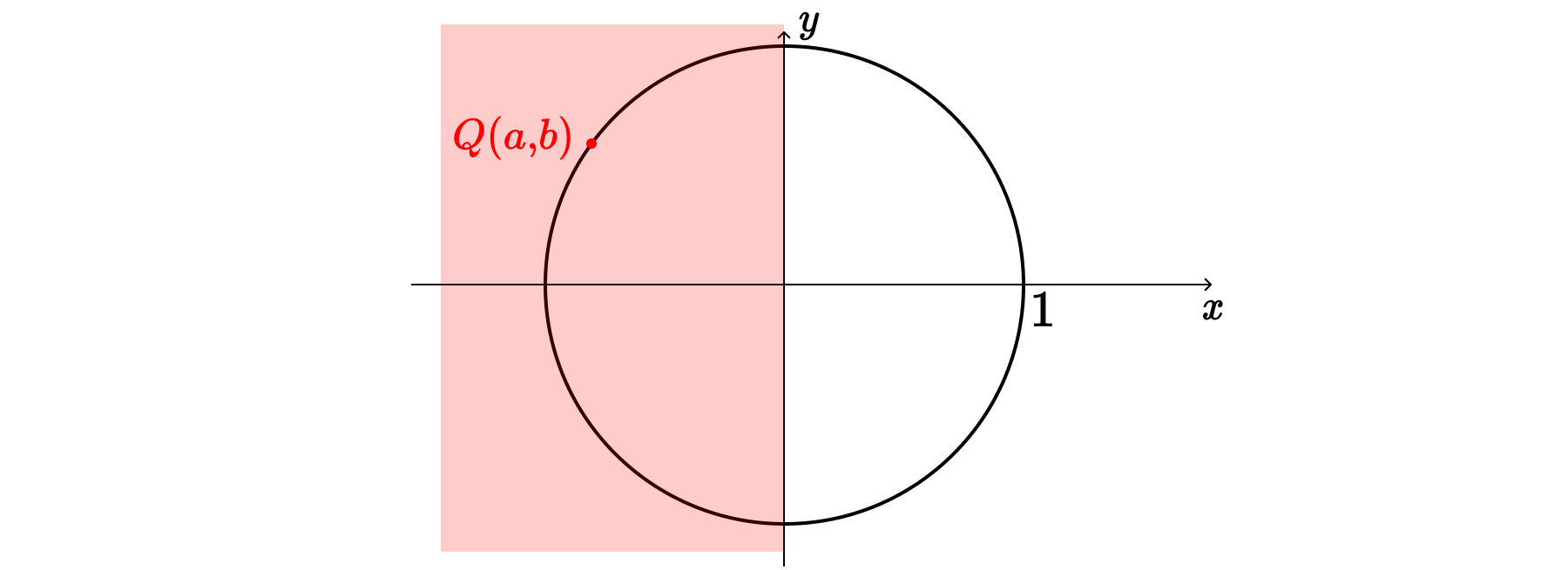 즉, $P(\cos{(\dfrac{\pi}{2} + \theta)}, \, \sin{(\dfrac{\pi}{2} + \theta)})$는 2, 3사분면에 있는 점이지만, 새롭게 정의하는 점 $Q(\cos{\theta}, \, \sin{\theta})$는 1, 2사분면 위의 점이 된다.