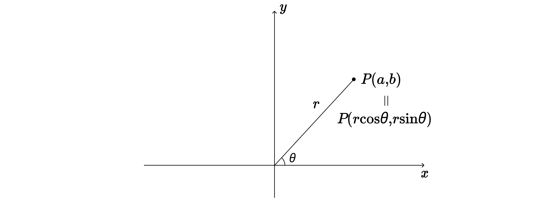$$P(a, b) = P(r\cos{\theta}, r\sin{\theta}) $$