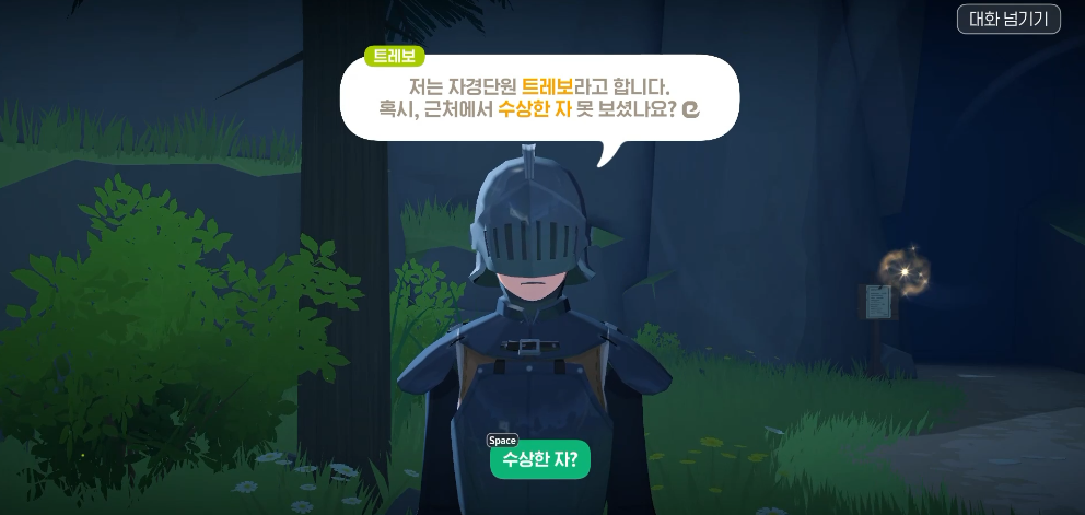 알비 던전 가는 길에 마을 자경단 트레보가 있을 것이라고 하니, 만나볼 것을 권유