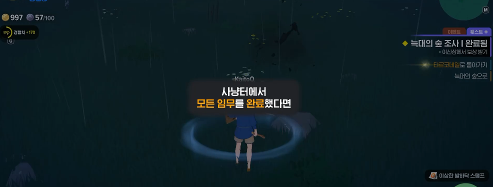 늑대의 숲에 들어가기 전에 '늑대의 숲 조사 Ⅰ'이라는 임무를 받을 수 있다. 해당 임무 없이도 채집 등이 필요한 경우 사냥터(늑대의 숲 등)에 들어갈 수 있지만, 많은 경험치와 아이템을 얻기 위해서는 이전 포스팅에서 까마귀가 말한 "은동전"을 사용하여 임무를 수행하는 편이 좋다.