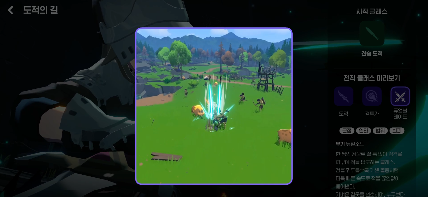 세번째는 "듀얼블레이드". 무기는 듀얼소드, 방어구는 경갑을 선호한다