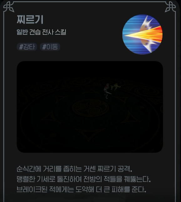 순식간에 돌진하여 적에게 붙는 기술로, 브레이크 된 적에게 사용하면, 도약 공격을 하며 더 큰 피해를 준다