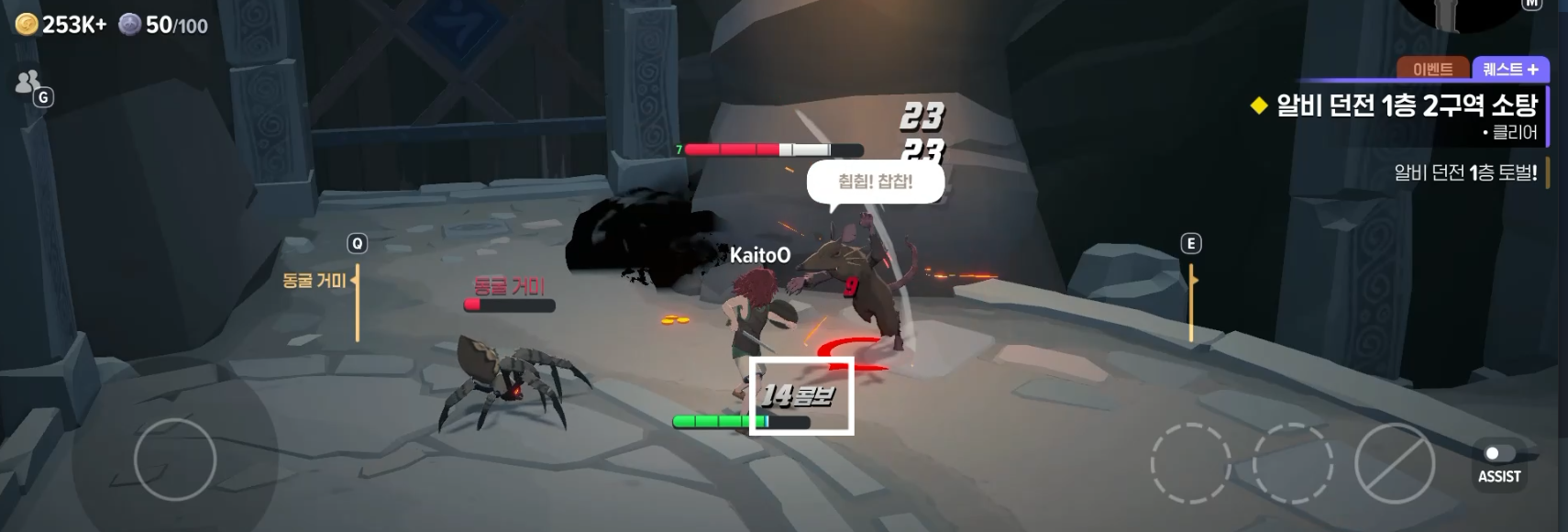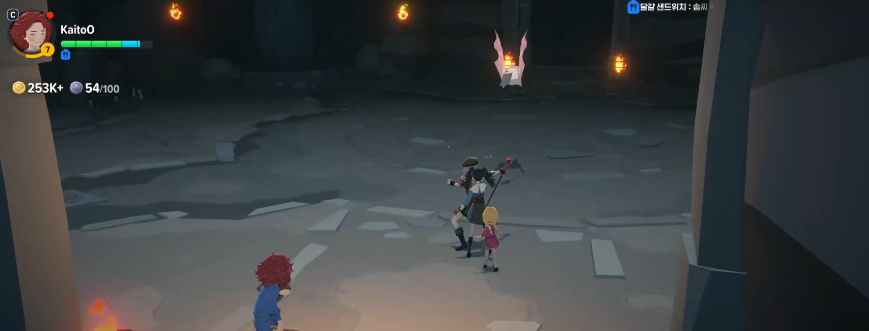 우연한 만남을 켜놓고 들어왔더니 "다른 모험가를 우연히 만났다!"라는 문구와 함께 다른 플레이어가 입장했다. AI가 움직이는 것이니 말을 걸지는 말자. 사실상 튜토리얼에 가까운 형태라 진행하는데 크게 무리는 없다. 마지막 방까지 적을 잡으면서 진행하자(유튜브 참고)