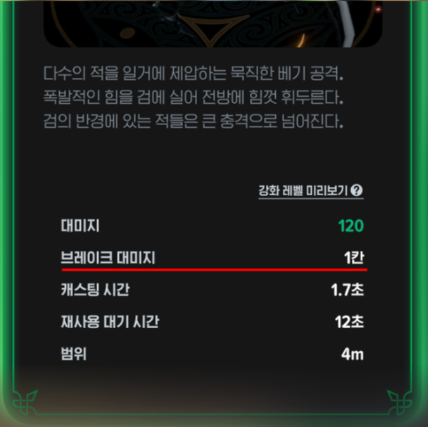 블레이드 스매시의 스킬설명을 살펴보면, 브레이크 대미지를 1칸 채운다고 하는데