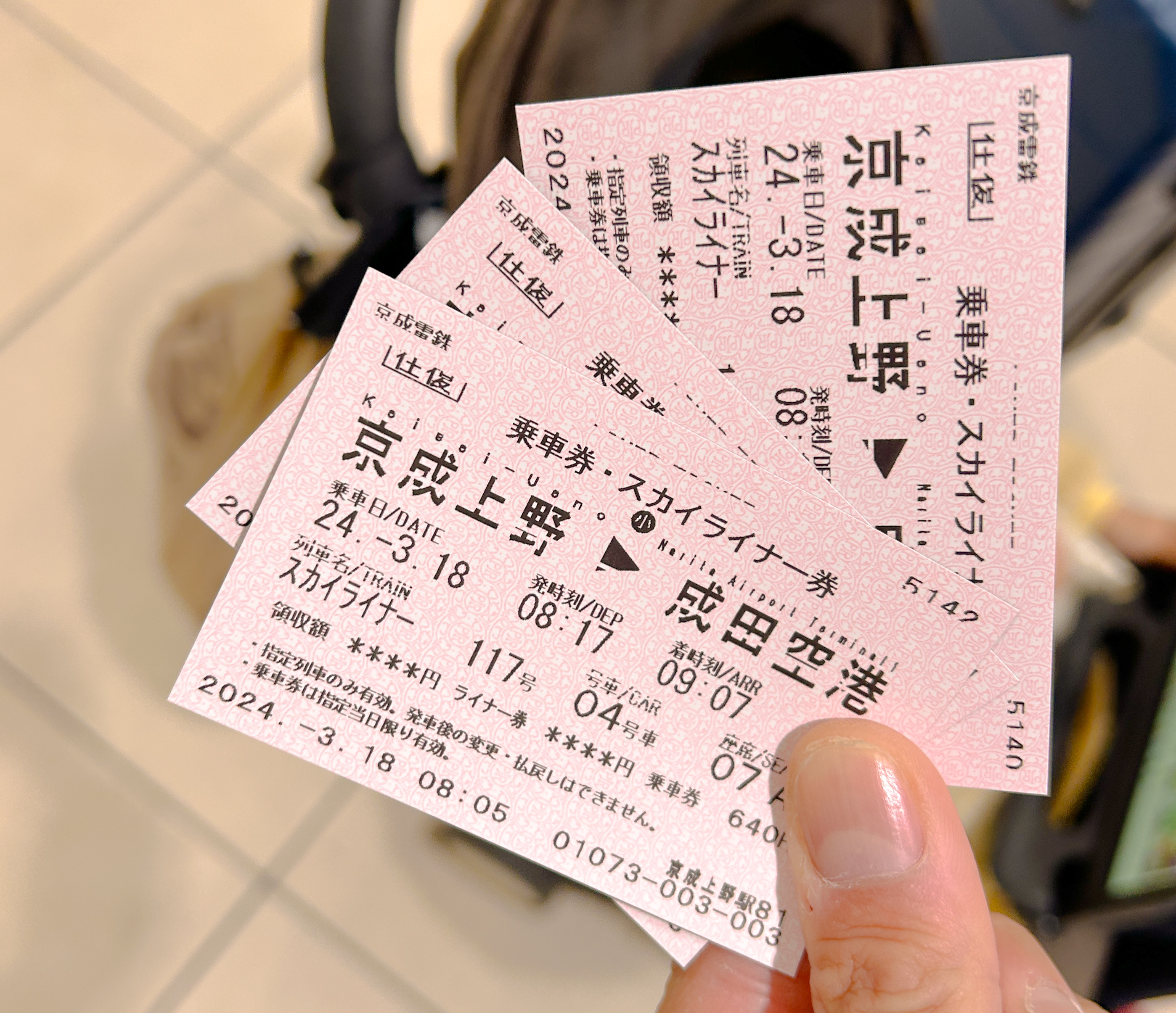 또한 나리타공항에서는 게이세이우에노(京成上野, 독음은 케이세이(けいせい)인데, 한국어로는 보통 게이세이로 표기되어 있다.)역으로 바로 연결되는 스카이라이너를 타면 약 50분이면 우에노공원 바로 앞까지 갈 수 있어, 나리타공항을 이용하는 것이 여행계획을 짜는 데에는 더 수월하다. 또한 예매가 가능하므로 안정적인 계획을 짜는 데에도 도움이 된다.