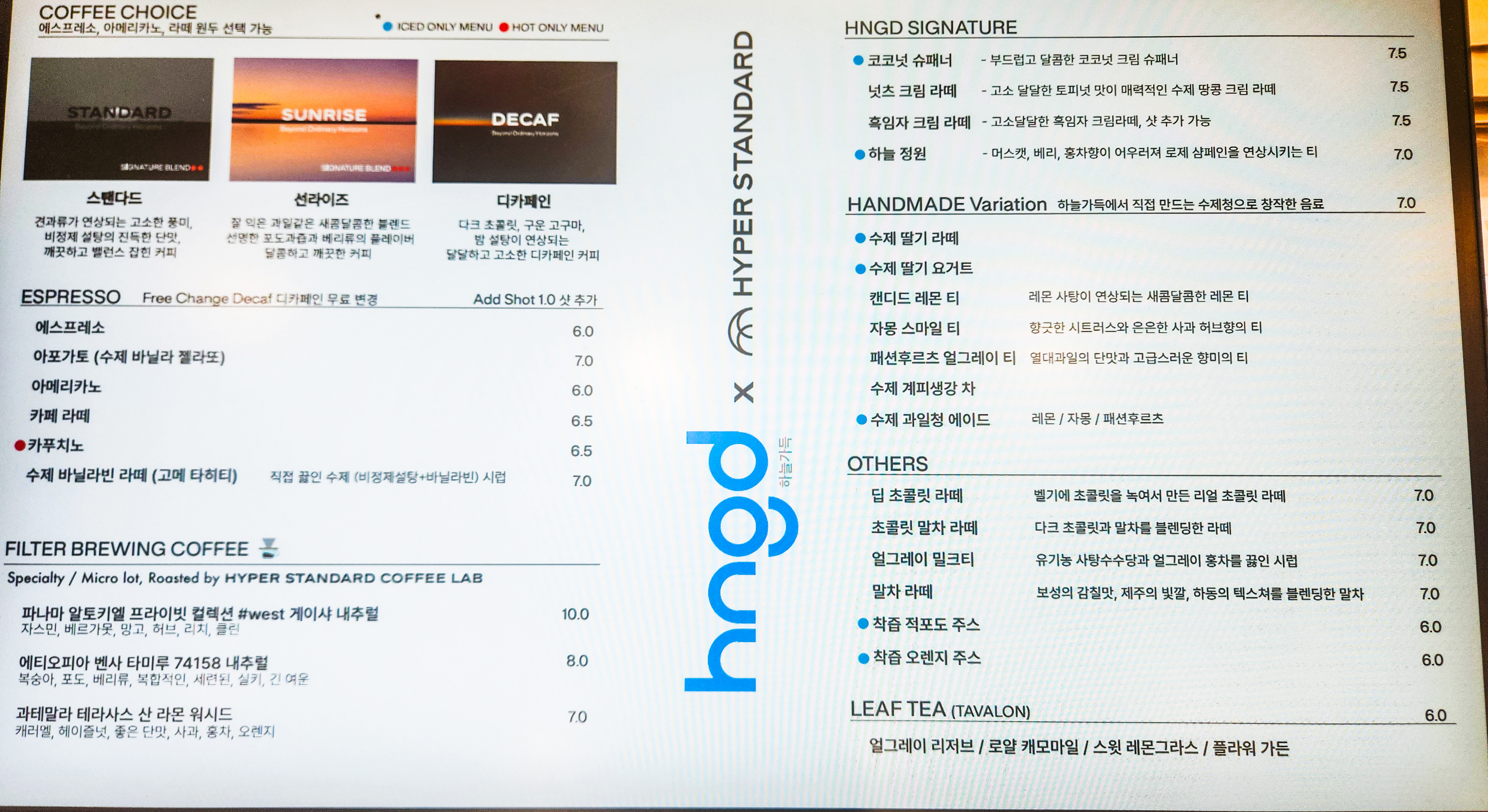 가격은 생각보다 있는 편이다. 하늘가득이라서 영어로 HNGD라고 했는데, 솔직히 와닿지는 않는 네이밍이다. 필자는 어찌됐든 대형카페를 오면, 금액을 떠나서 자신들이 시그니처로 내놓는 건 반드시 먹어본다. 그리고 아무리 인테리어가 예뻐도 시그니처가 맛없으면 다신 안 간다. 자신들이 걸어 놓은 메뉴이니 그 정도만큼은 맛, 플레이팅 등 당연히 신경쓰는 것이 음식을 파는 사람의 기본이라 생각하기 때문이다. 많은 사람이 간 만큼 코코넛 슈페너, 넛츠크림라떼, 하늘 정원 티를 주문했다. 가격은 무려 7,500원이다.