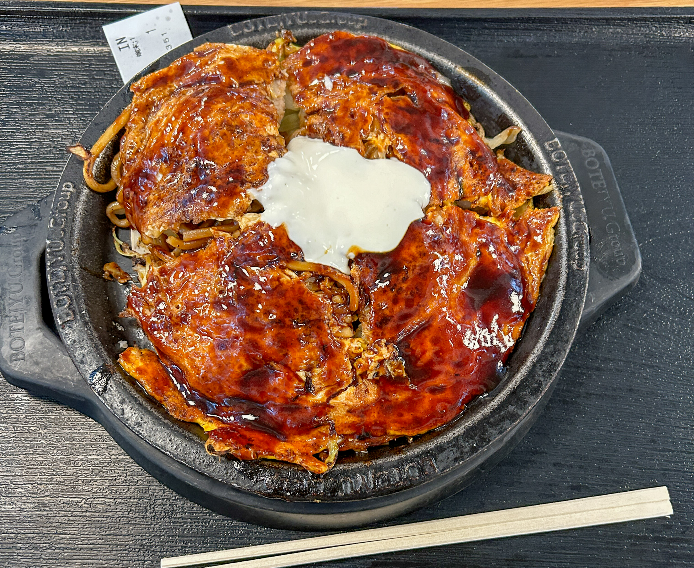 먼저 보테쥬포장마차이다. 희한하게 본점이 도톤보리에 있음에도 도쿄인근에 지점을 많이 두고 있는 음식점으로, 오사카 본산답게 오코노미야끼가 유명한 걸로 알려져 있다. 다만, 모든 지점의 구글 평점이 그렇게 높은 편은 아니라서 우리나라 사람들은 많이 접해보진 않았을 것이다. 나리타 공항점 역시 마찬가지다. 하지만 나리타공항 푸트코트에 들어서면 대부분의 사람들이 갈색 소스가 발라진 부침개같은 것을 먹고 있는 것이 보일 것이다. 공항에서 뭔가 대단한 음식을 찾기는 어려우니 오코노미야끼나 야끼소바를 먹고자 한다면 이 곳을 선택하는 것도 나쁘지는 않다.